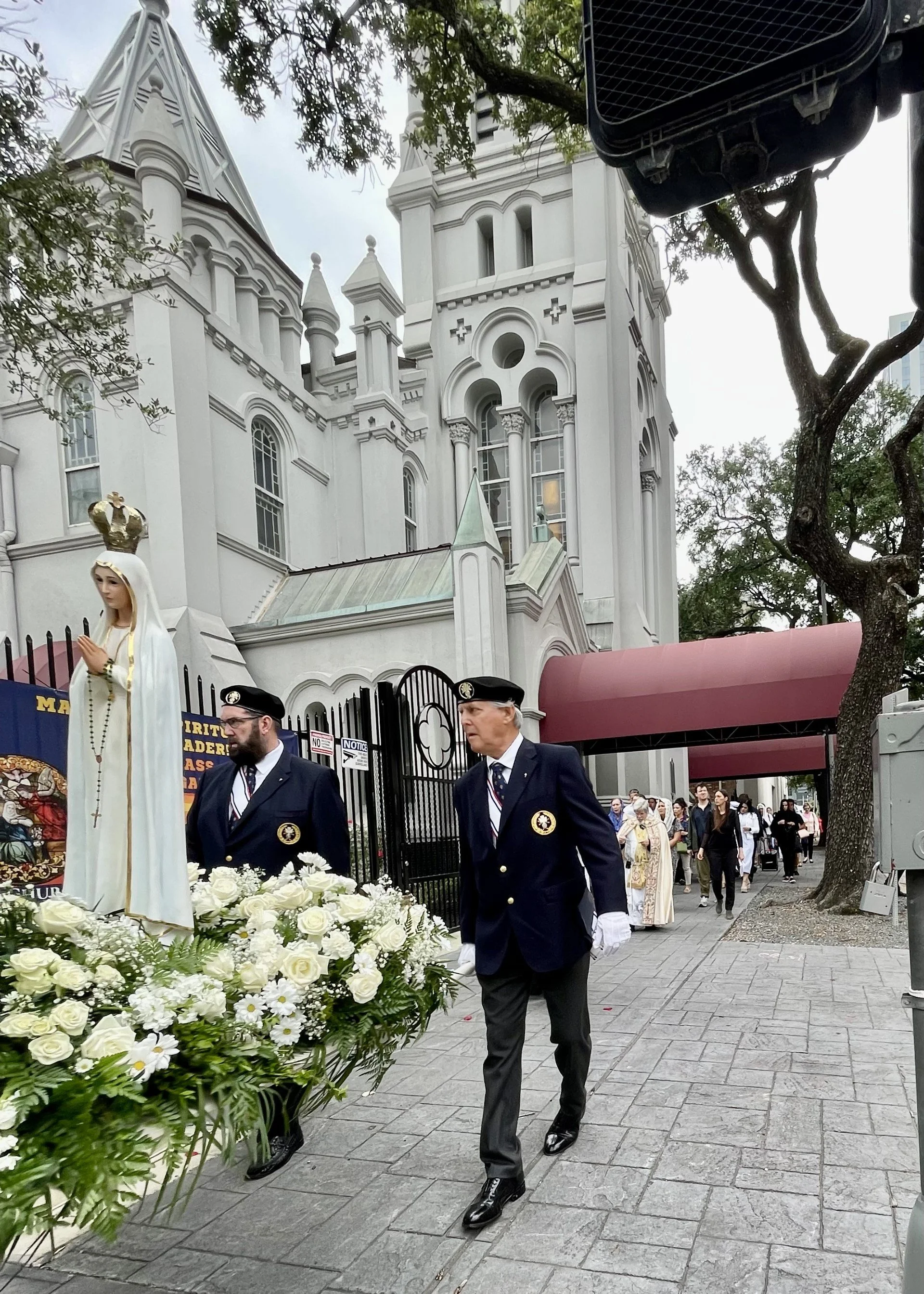 Join us on Saturday, May 16, where the faithful will be led by Fr. Felix in an outdoor Rosary procession around Discovery Green. We will accompany the statue of Our Lady of Fatima, beautifully adorned with flowers and carried by the Knights of Columbus, as we pray the Joyful Mysteries of the Rosary as Our Lady requested!